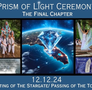 The Women's Meditation Circle and the Spiritual Community achieved many awards and honors over the past 20 years. The Circle was honored by the Charities it supported which included Hurricane Relief, Feeding the Hungry, and The Wheel of Conscious Creation. In addition it was chosen as Favorite Meditation Leaders by Natural Awakenings Magazine six times in a row until the category was retired. We conducted many ceremonies including the signature ceremony of The Prism of Light which established Sarasota as one of 22 Cities of Light. We gratefully served the community in many endeavors and will continue to do so. The photos below are but a small sampling of the honorariums and awards. Included below are links to The Blue Light Meditations, The Prism of Light story and the 20th Anniversary film.
